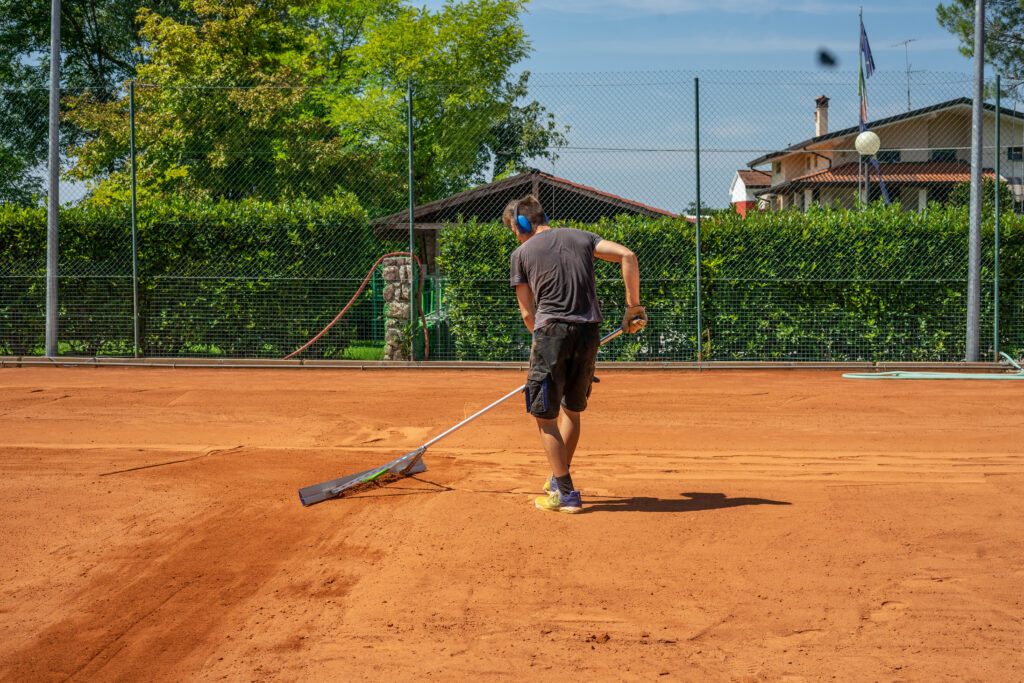Before proceeding with the actual maintenance of the clay court, it is essential to clean the playing surface. During the winter period, in fact, dry leaves, excess soil, pebbles and moss and weeds grow on red clay courts. To find out how to deal with this first step in the right way click here.